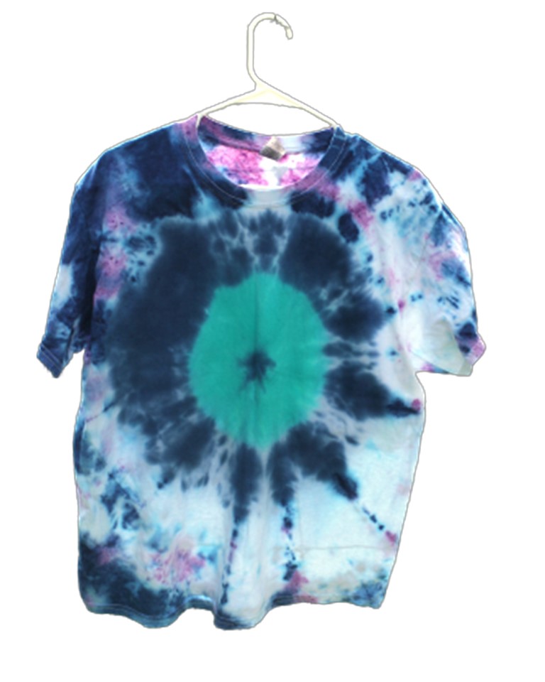 Hand Colored Dark Blue Green and Purple Large Tie Dye Tshirt