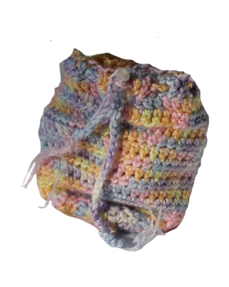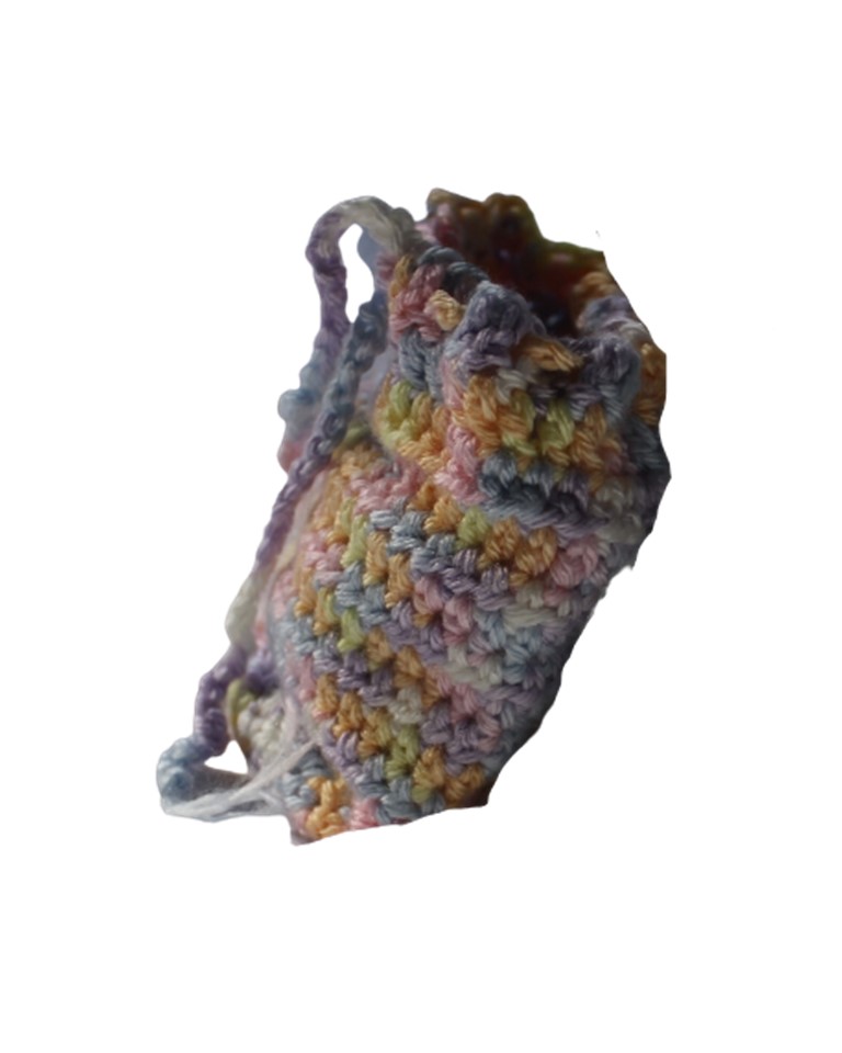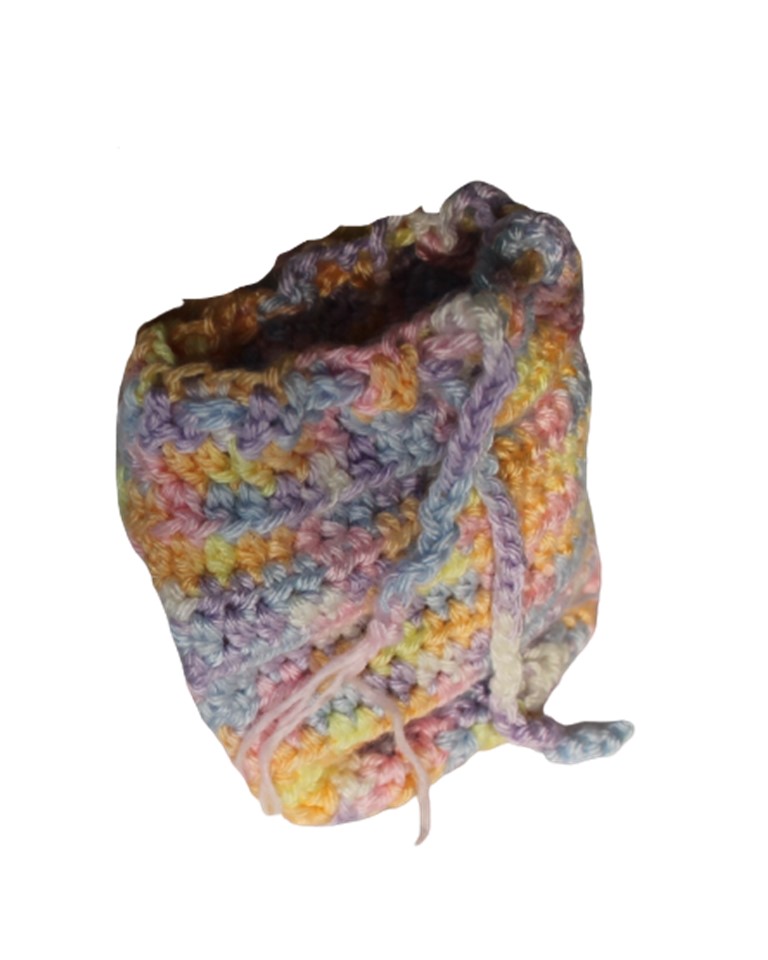 Hand Crocheted Variegated Pastel Colors 5×5 Hand Crocheted Coin Bag. The bag was created using variegated pastel colored Caron Simply Soft yarn that is 100% acrylic, machine washable, machine dryable and hypoallergenic. It measures approximately 5 inches tall and 5 inches wide. The bag has a crocheted drawstring to help open and close the bag. The pastel colors include pink, green, blue, orange, green, yellow and purple.