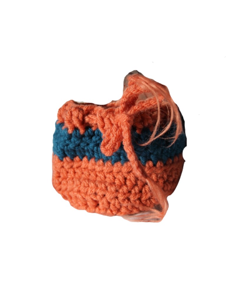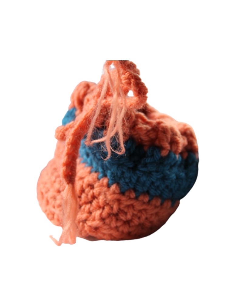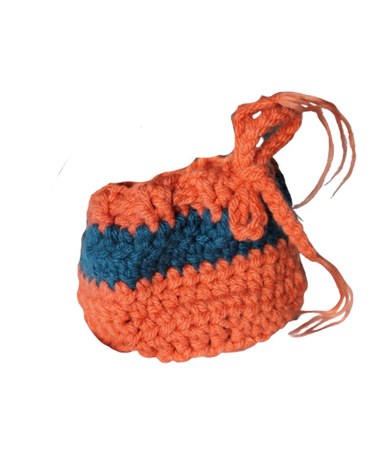 Hand Crocheted Persimmon and Ocean Coin Bag. This bag was created using a persimmon and ocean shade of medium weight, 100% acrylic, machine washable, machine dryable and hypoallergenic sports yarn. The bag measures approximately 4-1/2 inches wide 4-1/2 inches tall. It has a crocheted drawstring in orange to help open and close the bag.