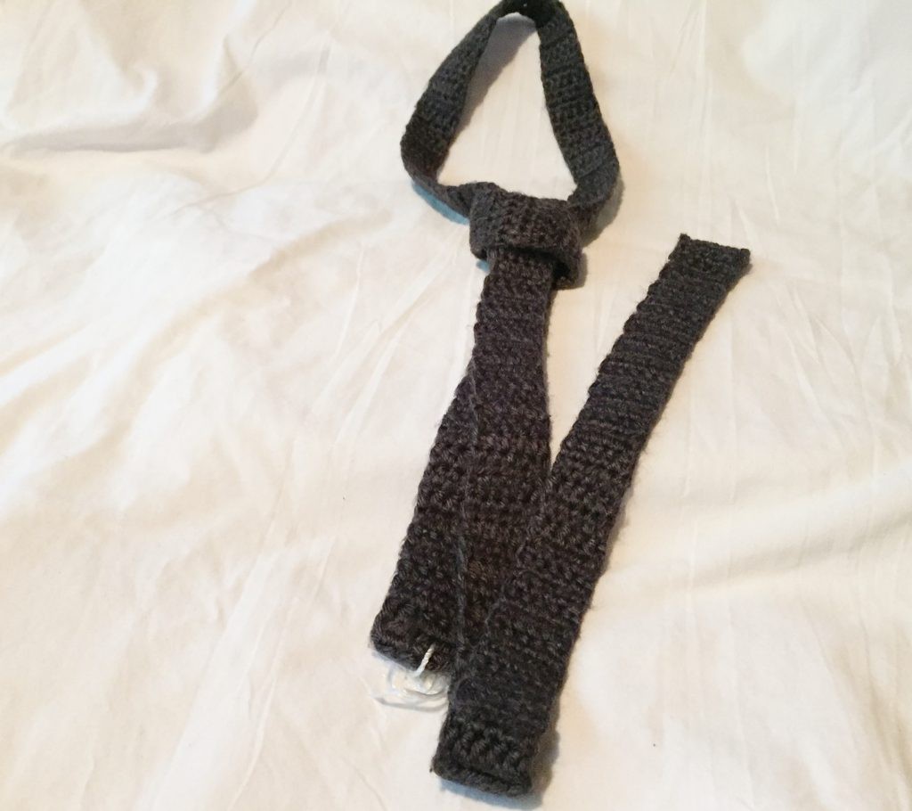 Charcoal Gray Crocheted 66 Inch Retro Skinny Tie. This hand crocheted necktie was created by using dark gray Caron Simply Soft that is 100% acrylic, machine washable, machine dryable and hypoallergenic yarn. It measures approximately 66 inches long by 1 inch wide.