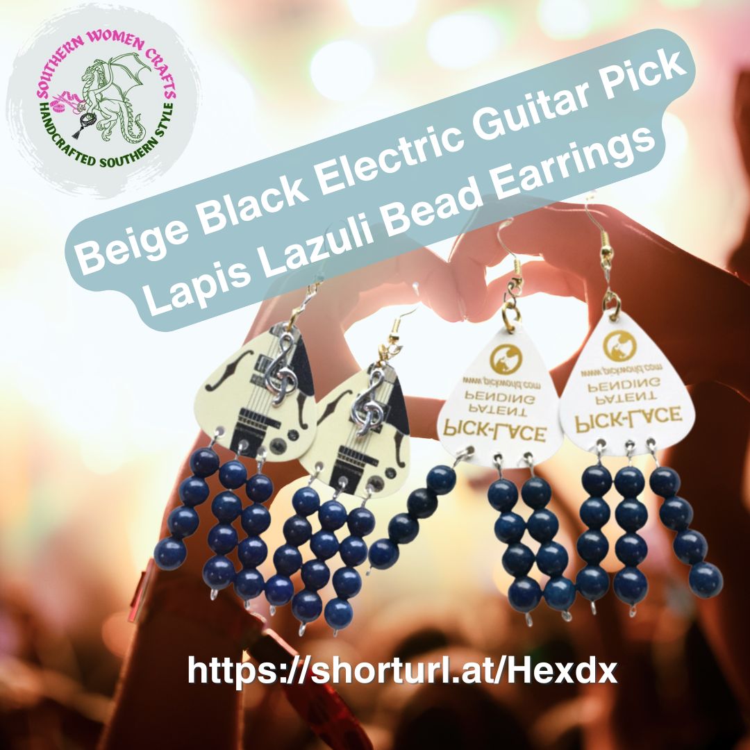 Beige Black Electric Guitar Pick Lapis Lazuli Bead Earrings